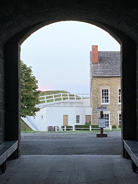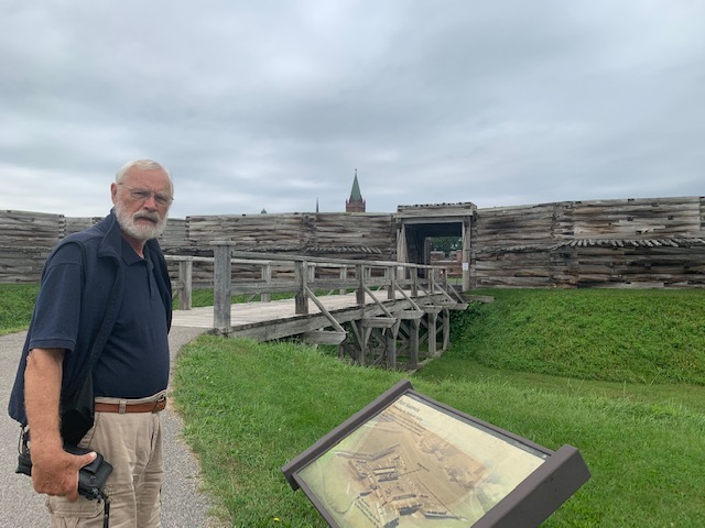 The town is small but has all the necessities, and the area we walked to was called Little Italy. We had been noticing a lot of Italian names in the area and we took a chance on the Savoy Restaurant, one of the oldest in town. Wow – a superb meal, and a live piano player to boot! The next morning we cycled in the drizzle to Fort Stanwix, a reconstructed Revolutionary War fort run by the National Park Service. Unfortunately, as we plopped the bicycles from the boat to the timber wall, we stirred up some little bees and both got stung, twice! The fort, rebuilt on its’ original foundations, was a wilderness fort at an important junction of waterways. The staff was wonderful and really brought the fort to life – a living situation which was difficult at best, and made a bee sting seem insignificant.