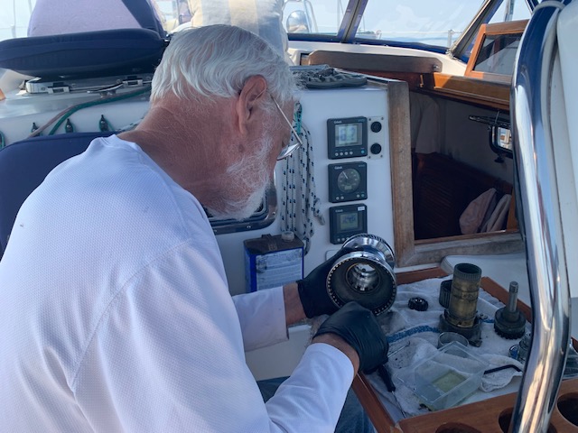 This was a planned stop for a few days, since we would have access to many boat supplies. But, like all planned things, priorities changed when the water pump on our refrigeration quit. Our fridge and freezer are water-cooled, and we were grateful that the Jeff Beach service department was able to find a new pump that same day and Fred got it installed. The bikes came in very handy, since the marina is huge, and it’s a long walk to the boat stores and restaurants.