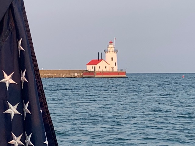 We continued south to Harbor Beach, where we were able to again anchor inside the breakwall. It was nice to get out of the confused seas, have some dinner and enjoy the sunset. The seagulls on the breakwall were not as thrilled, and kept up a cacophony well into the night. We were up early and on to Port Huron.