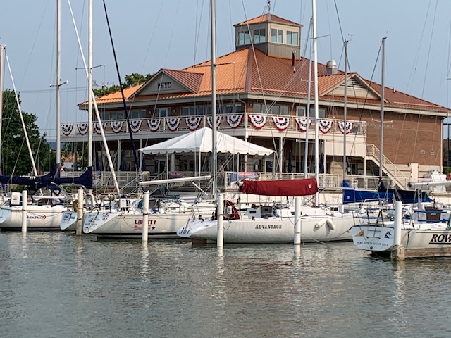 PHYC was welcoming and provided the perfect spot to rest a bit, along with access to their clubhouse, bar and bathrooms. It was fun to watch the “parade” that evening as boats returned to their various marinas upriver. We also visited with a few PHYC sailboats that were prepping for the upcoming Bayview to Mackinac race.