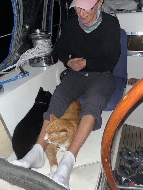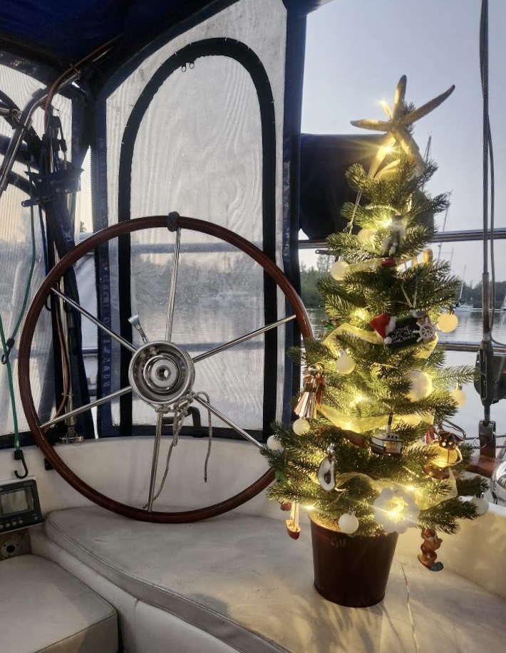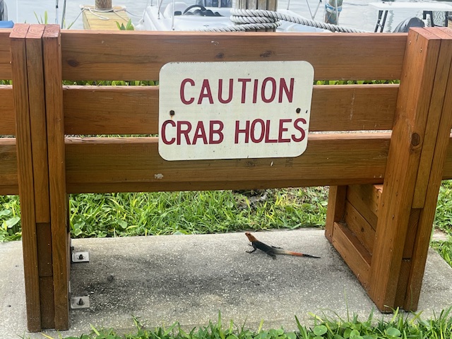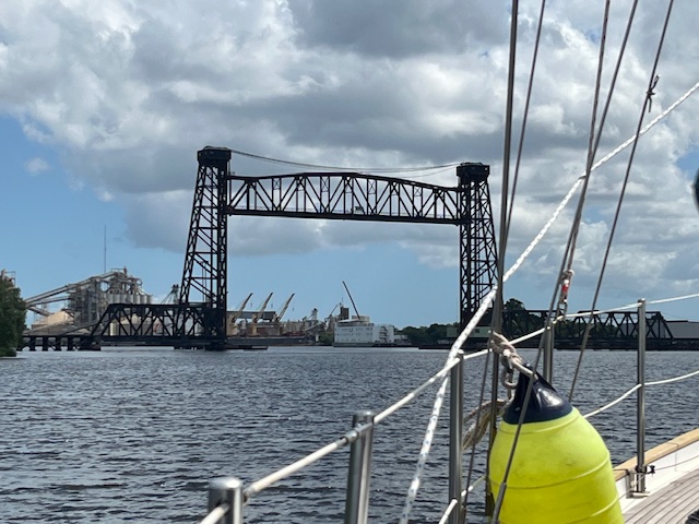 Imagine our surprise as we walked the dock and ran into Edsel, our friend and mechanic from Palm Coast! He was on a delivery and also waiting for weather. Great timing – Fred was trying to rerun some wiring to separate our accessory batteries from the house bank, and Edsel was a big help.