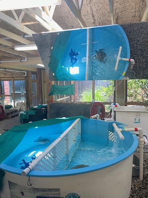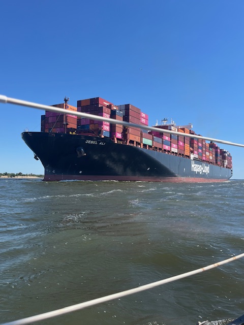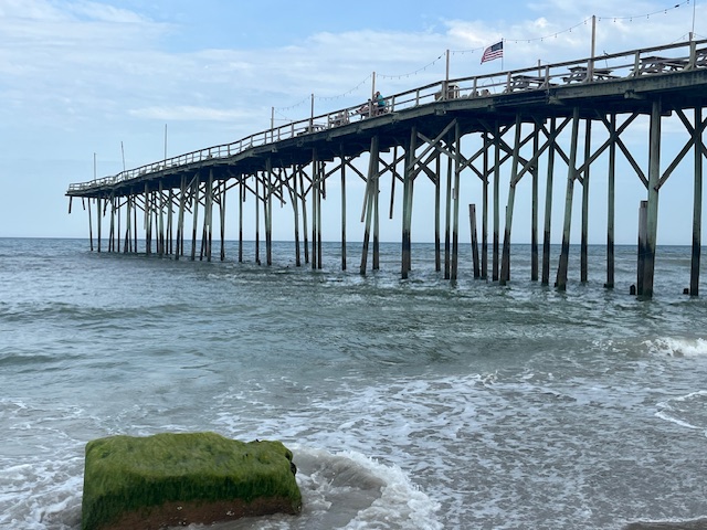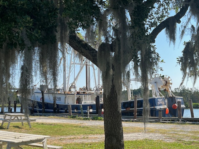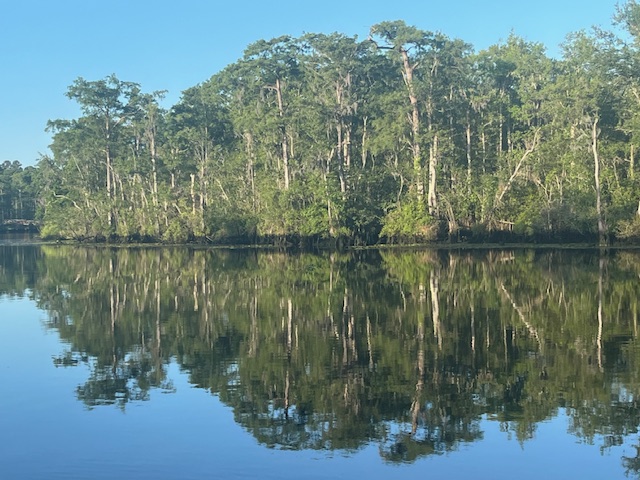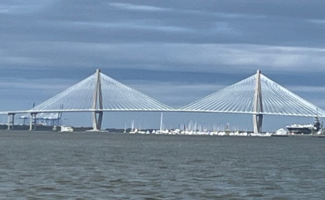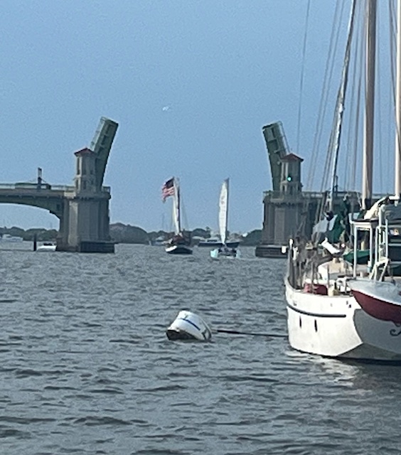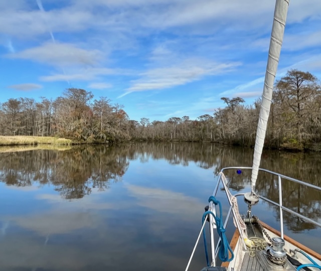 The end of May was looming, so we pointed the bow north once more. We enjoyed another delicious cajun meal at Harry’s in St. Augustine and visited the Sea Turtle Museum and Hospital on Jekyll Island. An outside, overnight jump from Jekyll to Winyah Bay, SC saved us at least a week of travel. While the marshes and creeks of Georgia and S. Carolina are beautiful and hold lovely anchorages and wonderful stops in Beaufort (Bewfort), Savannah and Charleston, they are also twisty and shallow, with strong tidal currents that slow down progress. After two beautiful nights on the river in the Waccamaw National Wildlife Refuge, we stopped at Myrtle Beach Yacht Club and met up with Evelyn, whom we had met on our very first trip south – three years ago! Although no longer with her boat partner we had fun catching up, and enjoyed the luxury of swimming in the pool while we did laundry. As we like to say, cruising is not all beaches (or pools) and umbrella drinks, but sometimes it is!