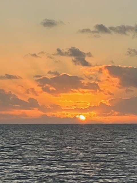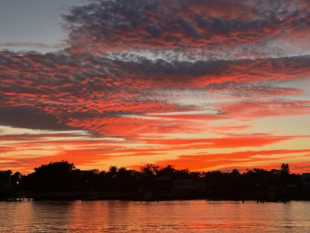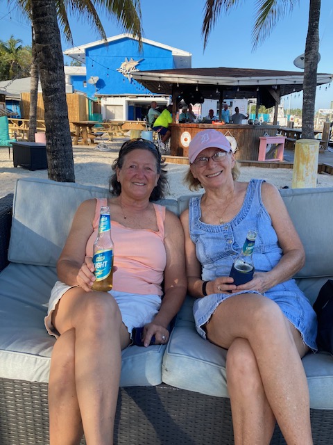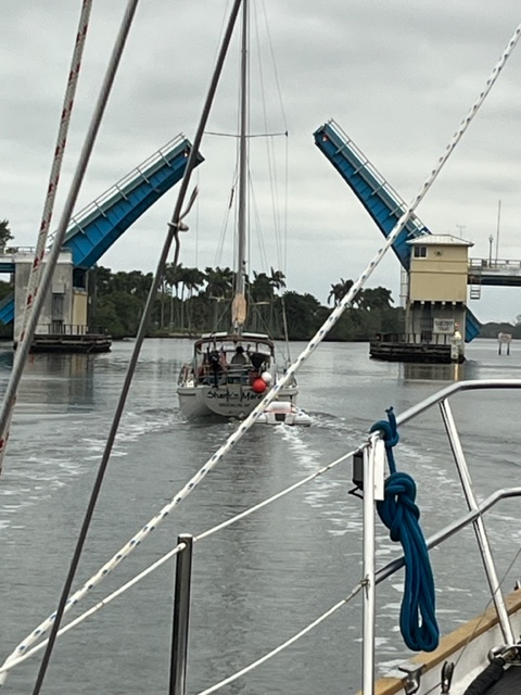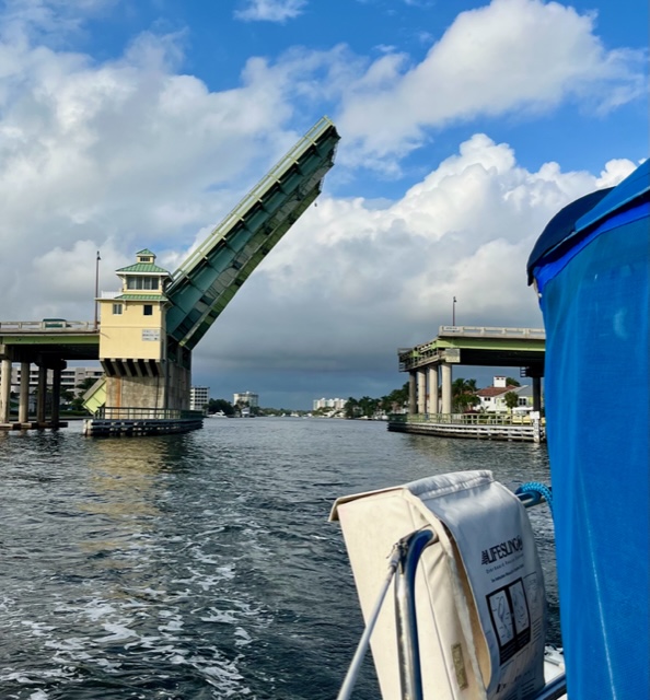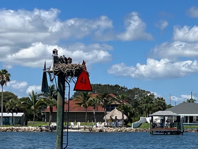 It was a mini exodus as boats left the harbor after being pent up for several days of thunderstorms. We had intended to head north and try to get all the way to Beaufort, NC. However, it appeared that our AIS was not working (hmmm – we messed with a lot of electrical stuff…). This instrument identifies surrounding boat traffic, and also transmits our boat position. Even with radar, Lisa was not comfortable being in the ocean for 3 days without it, so we decided to cross straight west to Lake Worth/West Palm Beach, which we could make by dark. East winds made for lumpy waves as we neared the coast, and it was a relief to pull into the lake at sunset and drop the hook. The next morning we started our trek up the ICW. We made it to Vero Beach in 2 days. Most of our fellow cruisers had already headed north, but we had a warm welcome from Ginna and Peter on Take Five and Lew and Trudy on Blue Flamingo, who were staying for the summer. The biggest surprise was meeting up with Deb and Jeff from Mt. Pleasant, MI on their “new” boat Destiny. We met them 12 years ago in the North Channel when our granddaughter Emily befriended their daughter Lily.